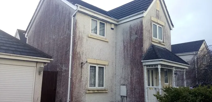 We clean algae off rendered walls using a careful and effective approach. First, we assess the extent of the algae growth. Then, we apply a specialized cleaning solution that safely targets the algae without harming the render. After allowing the solution to work, we gently scrub (if needed) the area and rinse it thoroughly to remove all traces of algae. This process not only cleans the surface but also helps prevent future growth.